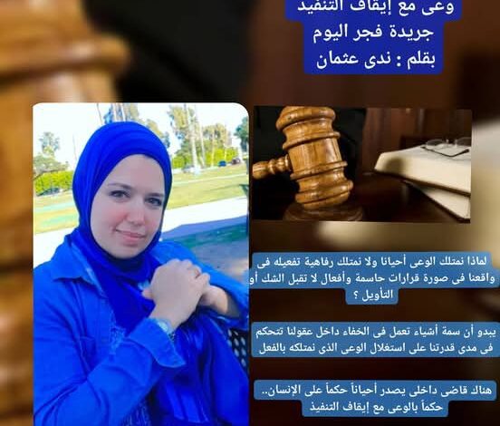 يبدو أن سمة أشياء تعمل فى الخفاء داخل عقولنا تتحكم فى مدى قدرتنا على استغلال الوعى الذى نمتلكه بالفعل.. هناك قاضى داخلى يصدر أحياناً حكماً على الإنسان ـ مهما بلغ من درجات الحكمة والوعى ـ حكما بالوعى مع إيقاف التنفيذ ..